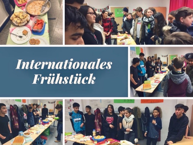 Die Schülerinnen und Schüler der IVK veranstalteten ein internationales Frühstück. Dafür luden sie die siebten Klassen in der ersten großen Pause in das IVK-Klassenzimmer ein. Die Schülerinnen und Schüler bereiteten Spezialitäten aus ihrer Heimat vor. Insgesamt gab es Speisen aus sieben Nationen (Afghanistan, Syrien, Iran, Irak, Mexiko, Indien und Serbien). Im Hintergrund lief auch landestypische Musik. Der Andrang war groß und den Gästen und Lehrkräften schmeckte es ausgezeichnet.